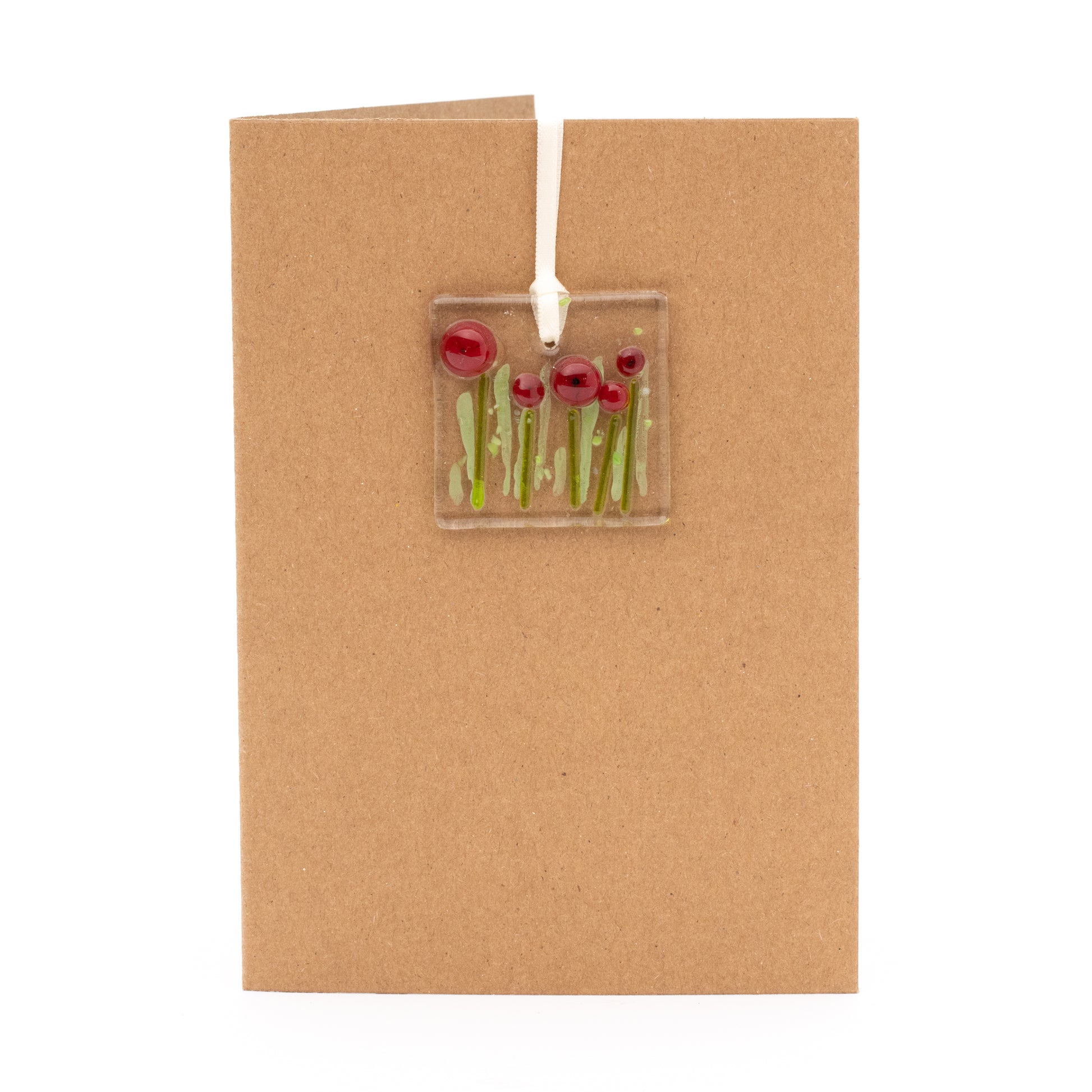 A handmade flower-card with detachable fused glass token and envelope (4x4cm approx. and satin ribbon.)